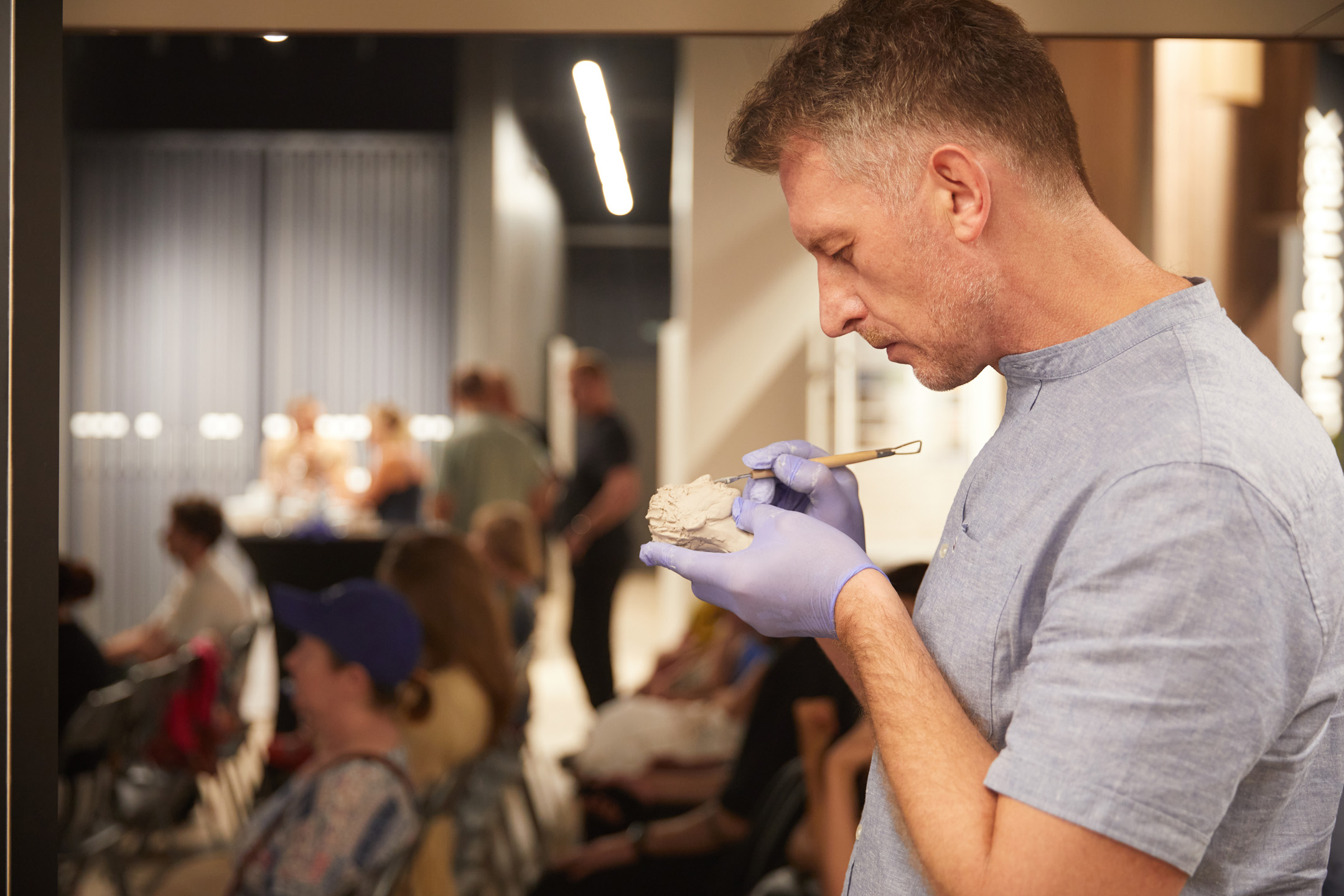«Основа кераміки — це глина. А глина, як ми знаємо, була в основі першої людини. Бог із глини створив Адама і вдихнув у нього життя. Навряд чи ми створимо такий шедевр сьогодні, але впевнена, що надихнемося створювати архітектурні шедеври в Україні», — так привітала гостей і розпочала вечір Анастасія Веснянка, маркетинг-директорка BUDZIRKA.