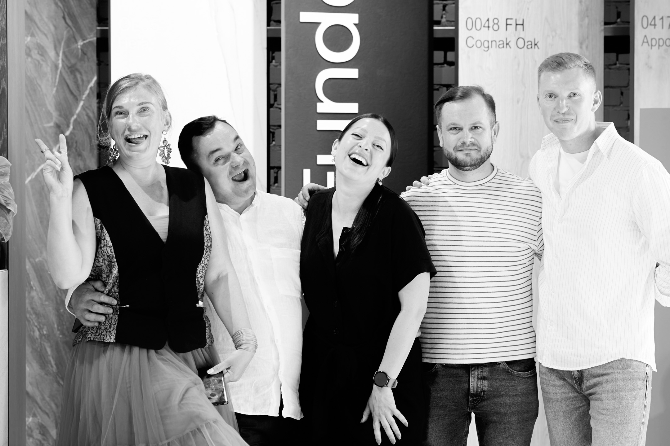 Олег Волосовський, архітектор, cпівзасновник loft buro, Олена Фатєєва, дизайнерка, засновниця Fateeva Design, Ярослав Корніяченко, СЕО компанії Vlasne Misto та Ірина Прима, Prima Interior. Фото: Максим Дробиненко