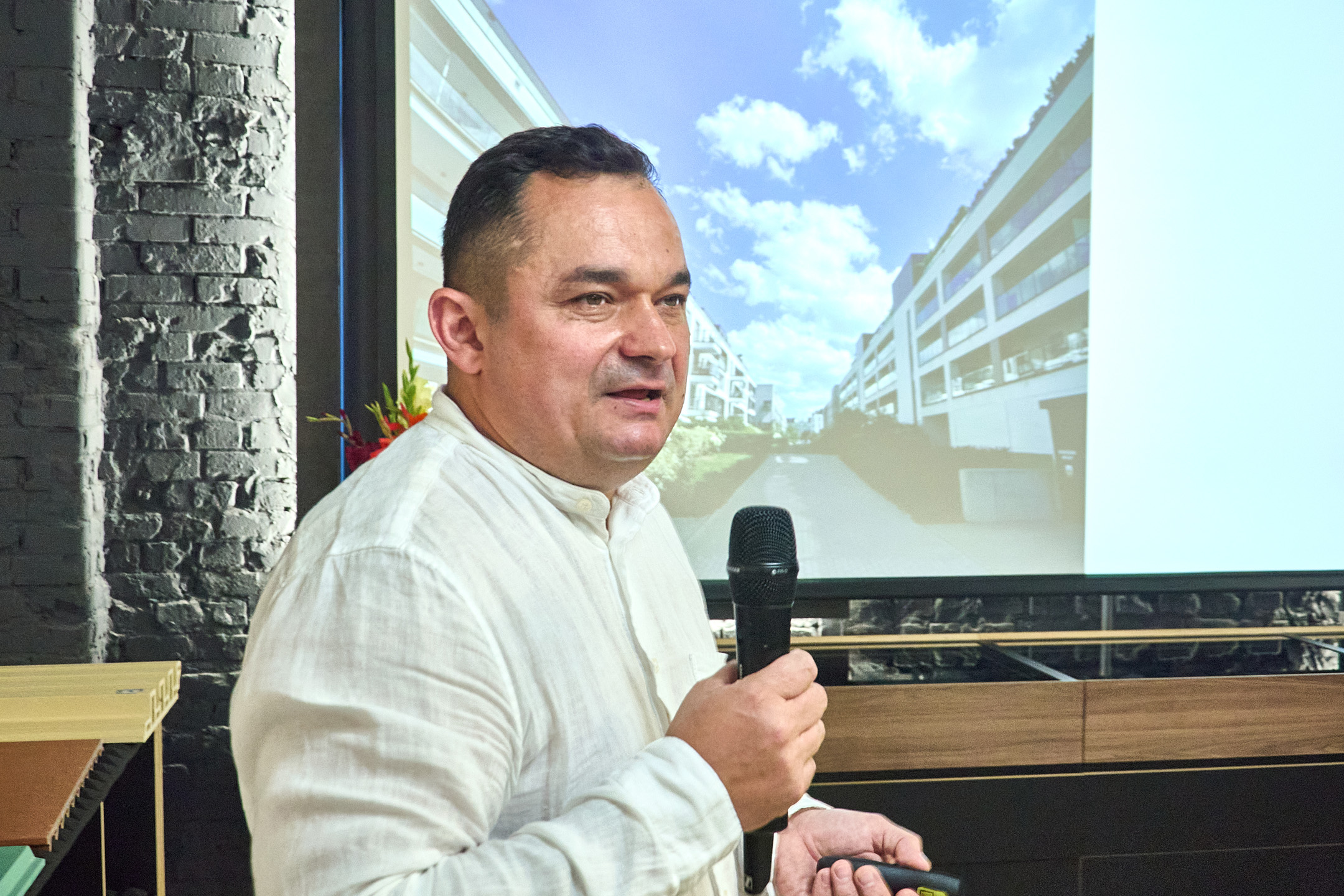Продовжив теоретичну частину вечора Святослав Шилін, CEO компанії BUDZIRKA. «У красивих будівлях живуть щасливі люди. Статистика з Miasteczko Wilanów це підтверджує. Тому наша з вами місія — правильна», — сказав Шилін.