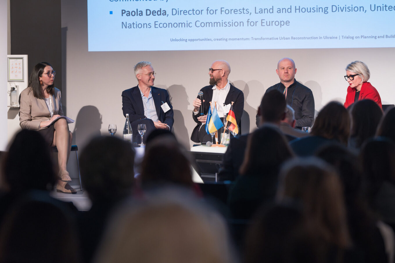 Надалі відбулася дискусія «Планування та будівництво для забезпечення стійкості», в котрій виступили спікерами український архітектор Олег Дроздов, засновник Харківської школи архітектури та урбан-коаліції Ro3kvit, професор Філіп Мойзер — німецький архітектор, журналіст та автор DOM Publishers, а також Губерт Траммер — польський архітектор і викладач, член спільноти «New European Bauhaus». Свої коментарі до дискусії надала Паула Деда, директорка відділу з питань лісів, землі та житла Європейської економічної комісії ООН.