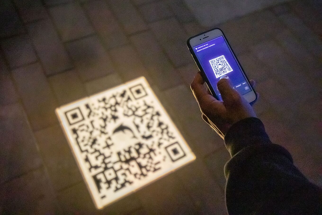 За допомогою мобільного телефону та світлового QR-коду будь-яка людина може створити та запустити на 30 секунд власного лазерного дельфіна. Фото: Іван Авдєєнко