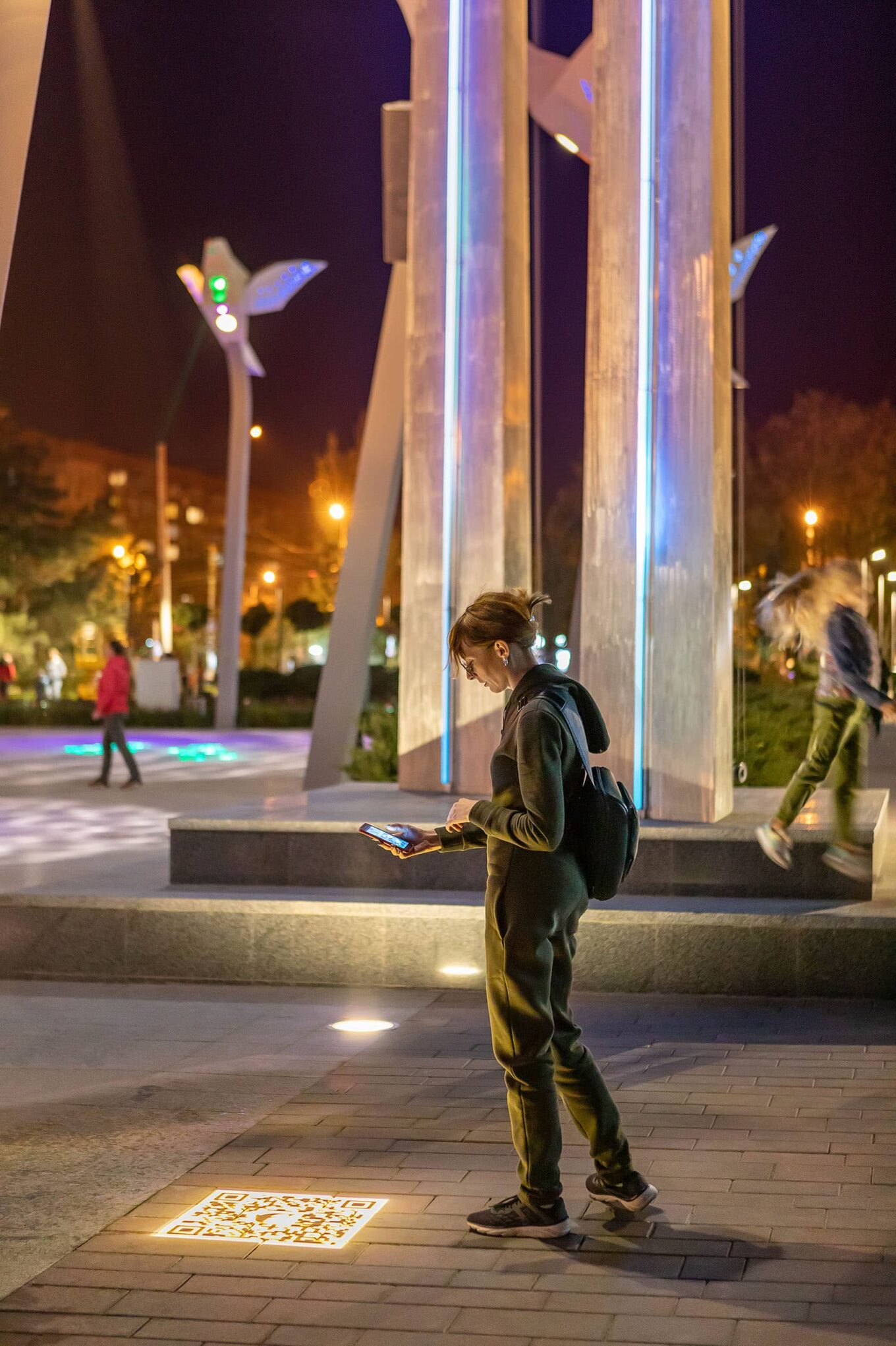 На кожній світловій опорі з птахом розмістили QR-код, який веде на сторінку сайту площі Свободи, присвячену цій області, з фото та короткою інформацією. Таким чином, поблукавши площею, можна здійснити віртуальну подорож по всій Україні й побачити, яка вона різноманітна й прекрасна.
