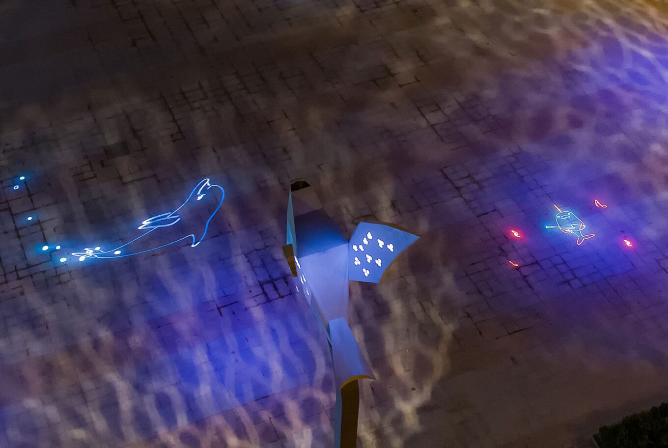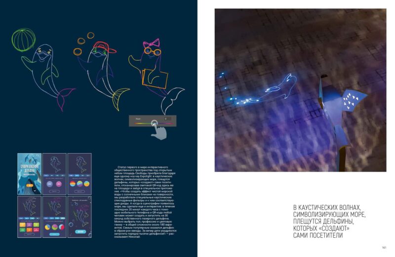Статус першого у світі інтерактивного громадського простору просто неба площа Свободи отримала завдяки ще одному ноу-хау Expolight: у каустичних хвилях, що символізують море, хлюпаються дельфіни, яких «створюють» самі відвідувачі, відсканувавши світловий QR-код тут же на площі й зайшовши в спеціальний додаток.