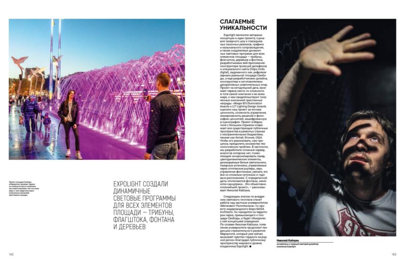 Реалізований компанією складний багатоплановий задум виявився надзвичайно новаторським не тільки для України, а й для всього світу, і перетворив міську площу на джерело радості та гордості за свою країну. Будучи частиною комплексної лайтинг-стратегії Маріуполя, проєкт Expolight вирішує одразу кілька завдань і запускає глобальну трансформацію міста, яке змінює свій імідж із промислового на рекреаційний.
