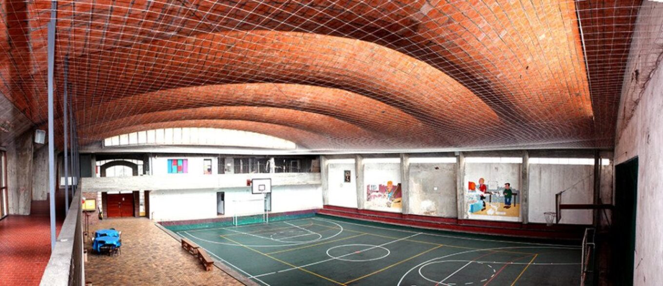 Внешняя оболочка школы – пространственная композиция из линейчатых поверхностей – коноида и гиперболического параболоида. И именно эта оболочка, одновременно являясь частью конструкции, обеспечивает выразительность здания. Разумеется, работавший над своим первым проектом с архитектором-каталонцем Антонио Боне, Эладио не мог не знать работы его земляка и тёзки Антонио Гауди.
