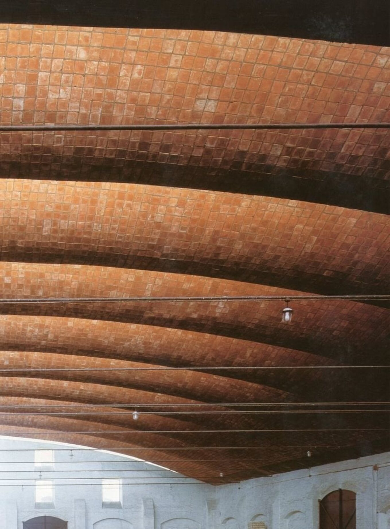 Мягкими волнами к центру «вспучивается» и самонесущая кровля здания с расстоянием между опорами сводов от 16 до 18 метров. Этот прием позволил идеально состыковать волнистые стены с плоской периферией кровли – без всякого карниза, таким образом, иллюстрируя и гениальную простоту проекта, и девиз мастера «отрицать через форму».