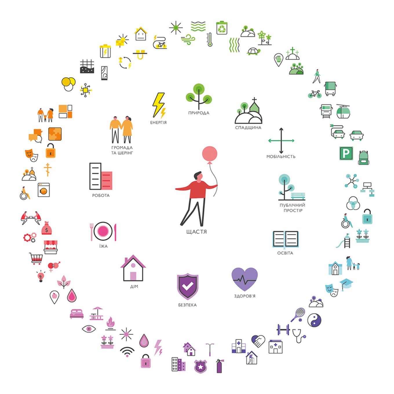 Мы разработали схему, разложив счастье на 12 составляющих, а каждую из них еще на 5—6 подкатегорий. И сопоставили все эти факторы с актуальной ситуацией в киевском Китаево — что есть, чего не хватает для счастливой жизни жителям местностей Мышеловка и Самбурки. Затем мы изучили мировые тренды, успешно реализованные проекты развития и спроецировали их на Китаево. Можно сказать, что ничего не изобретали, но пользовались мировым опытом, адаптировав его к украинскому контексту.