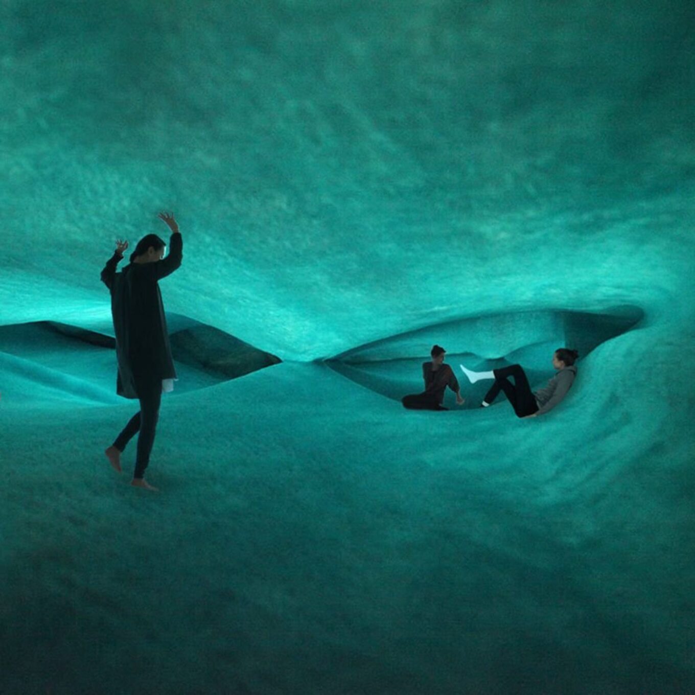 Numen экспериментировали с огромными сетками и трикотажными полотнами, с фетром и техническим текстилем. Свои наработки они используют также для сценографии – создают декорации к театральным выступлениям, сотрудничая с театрами по всей Европе.