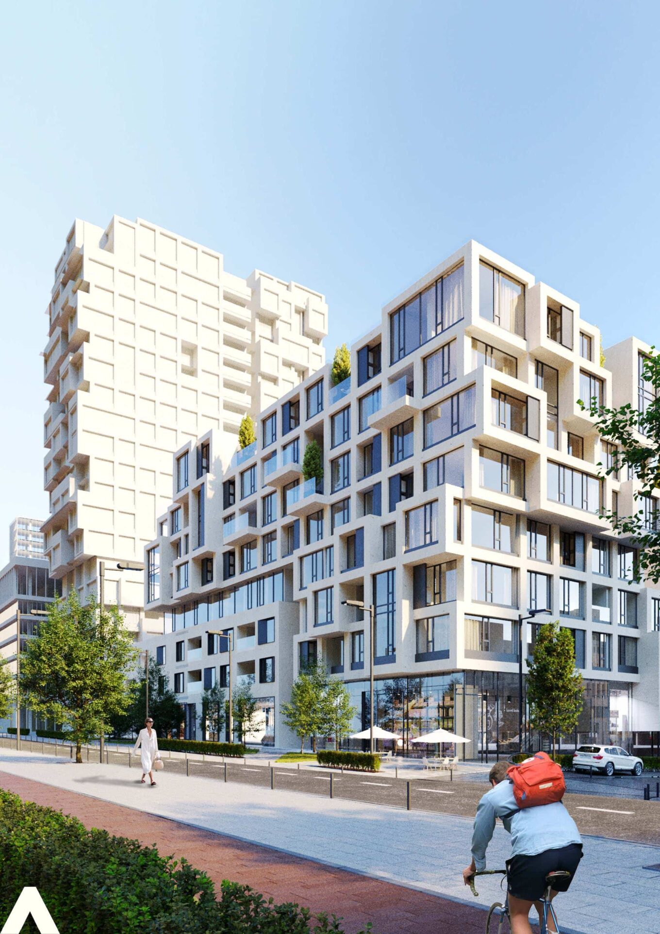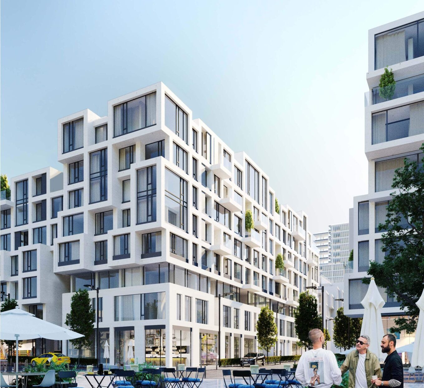 Кроме того, на территории городка будет вся необходимая сопутствующая инфраструктура: кафе, магазины, отель, банк, кинотеатр, современный медицинский центр, салон красоты, школа, детские сады, фитнес-центр с бассейном, паркинги, велопрокат, зарядные станции для электротранспорта и многое другое.