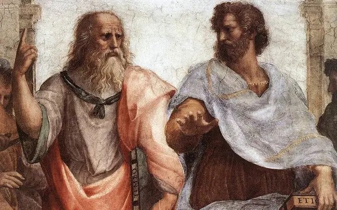 Рафаель у своїй фресці «Афінська школа» поєднав обидві епохи: генії Відродження частково представлені в образі античних героїв. Наприклад, Леонардо він зобразив як Платона, показуючи цим, що вони однаково обдаровані й талановиті.