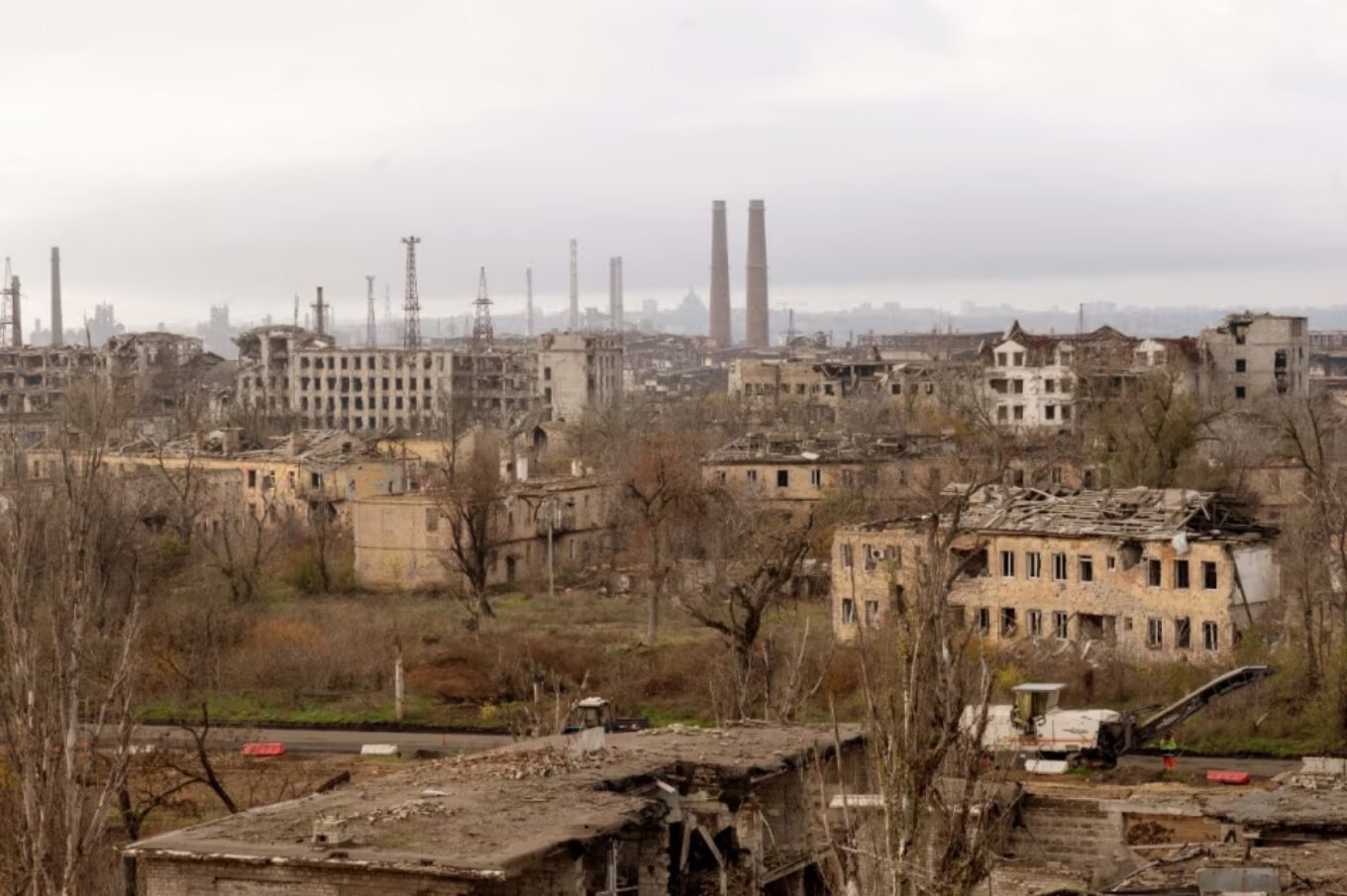 Цей абзац говорить, що не весь Маріуполь є активним будівельним майданчиком, а прогалини в міському плані москви насамперед ідеологічні. Територія металургійного заводу «Азовсталь» значною мірою зруйнована і недоступна. Однак у планах окупантів перетворити його на «мегапарк із прилеглими музеями, щоб вшанувати пам’ять битви — і, можливо, в той же час контролювати її пам’ять».