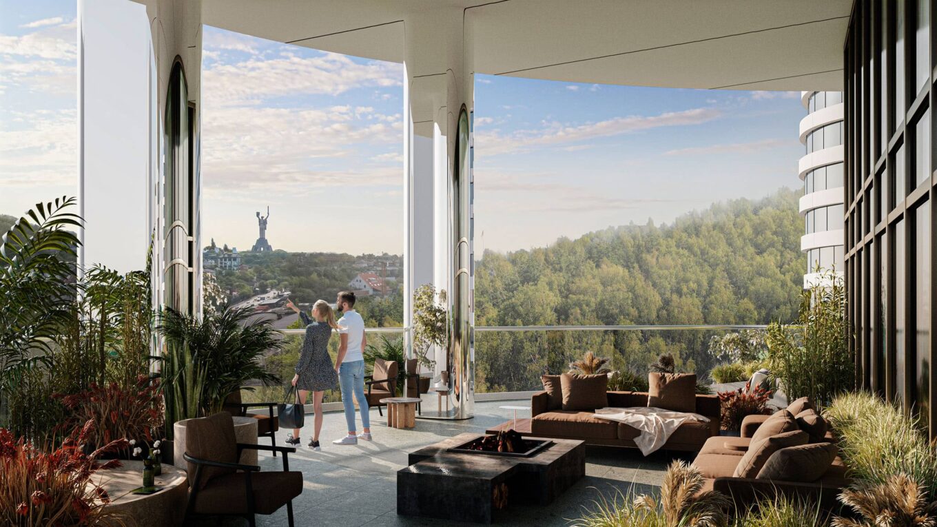 Учитывая выполненные уже работы — фундаменты и существующий конструктив, — нам необходимо было создать проект с яркой индивидуальностью, учесть инсоляцию жилых зданий, максимально открыть виды на центр столицы и Лавру, при этом не отягощать объект.