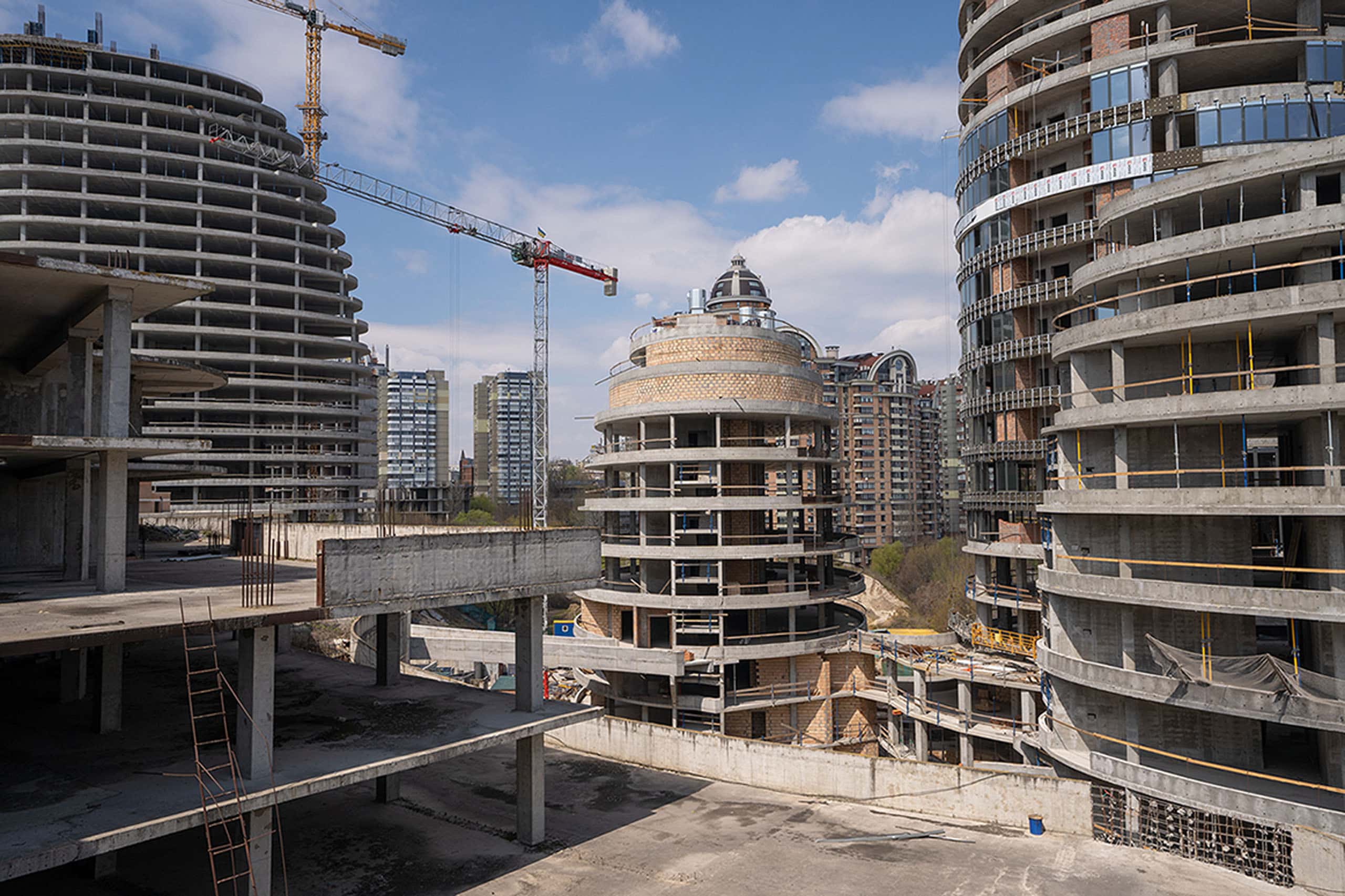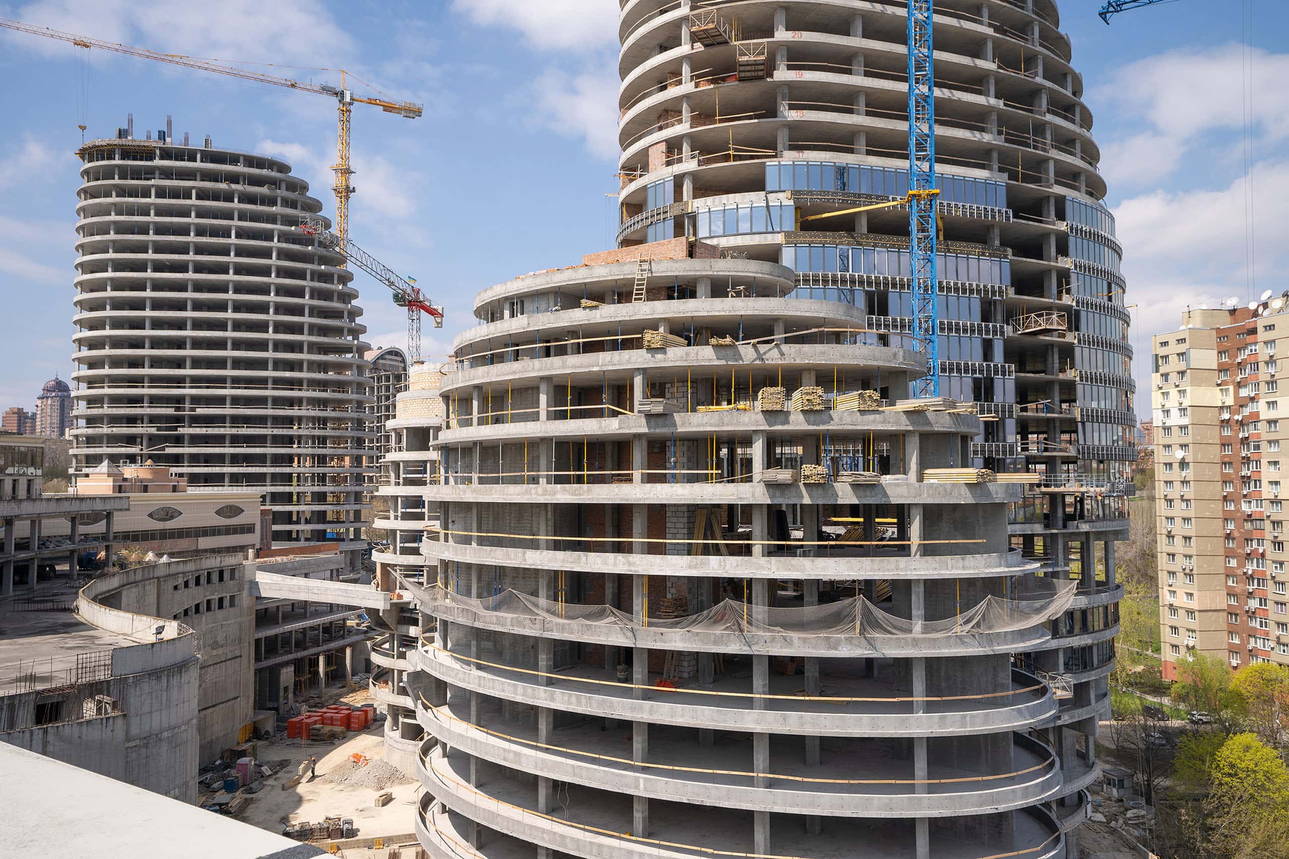 Учитывая выполненные уже работы — фундаменты и существующий конструктив, — нам необходимо было создать проект с яркой индивидуальностью, учесть инсоляцию жилых зданий, максимально открыть виды на центр столицы и Лавру, при этом не отягощать объект.