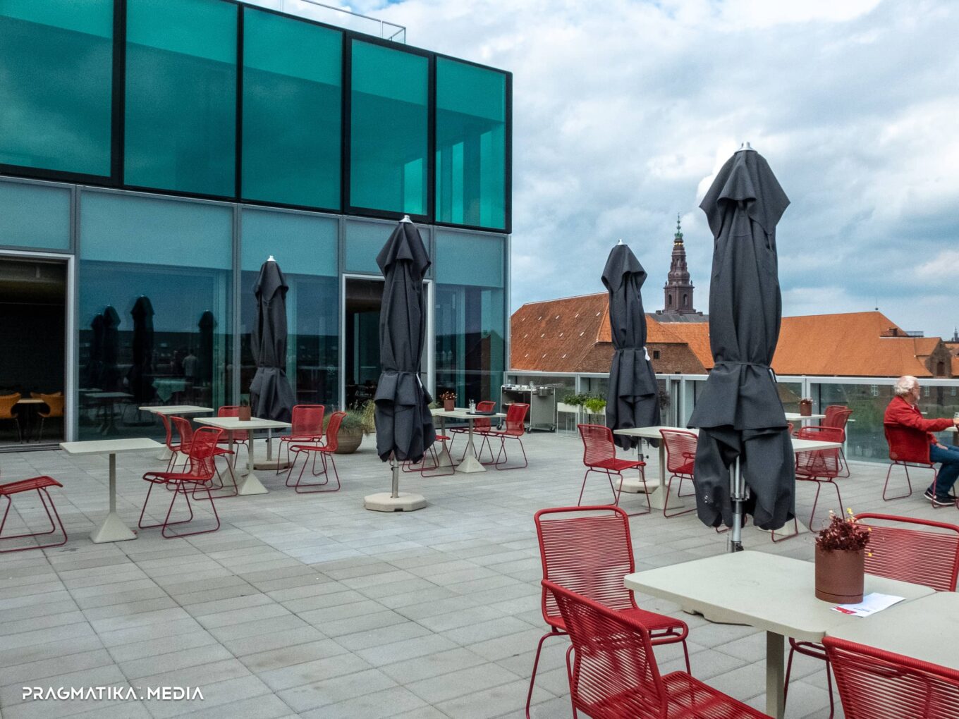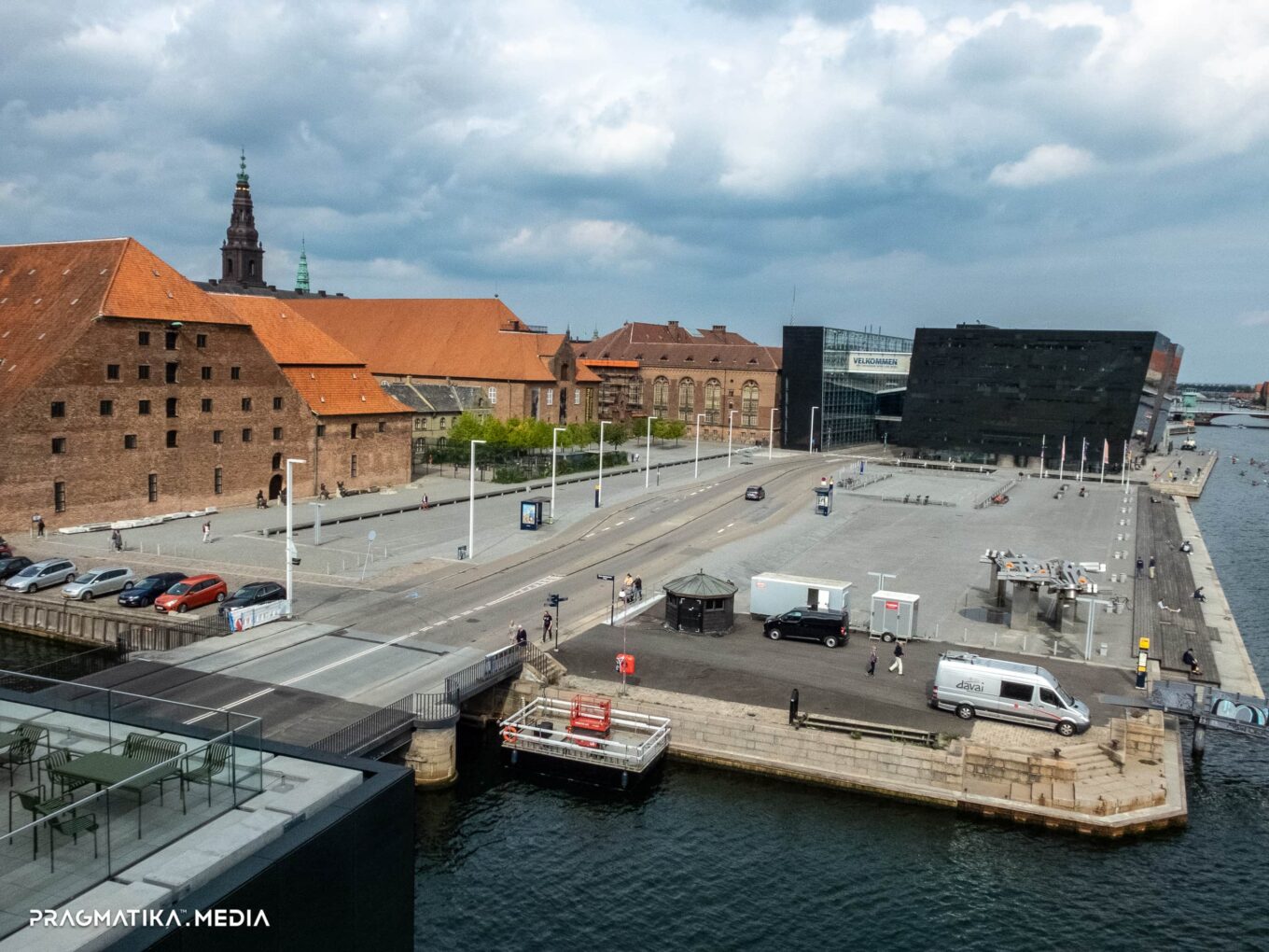 С открытых терраc на крыше BLOX открываются живописные виды на гавань, остров Slotsholmen и набережную с черным зеркальным кристаллом королевской библиотеки. До появления BLOX именно Black Diamond, построенный по проекту Schmidt Hammer Lassen Architects в 1999 году, был фокусным архитектурным объектом между мостами Langebro и Kneppels, но теперь уже два уникальных здания ведут диалог друг с другом.
