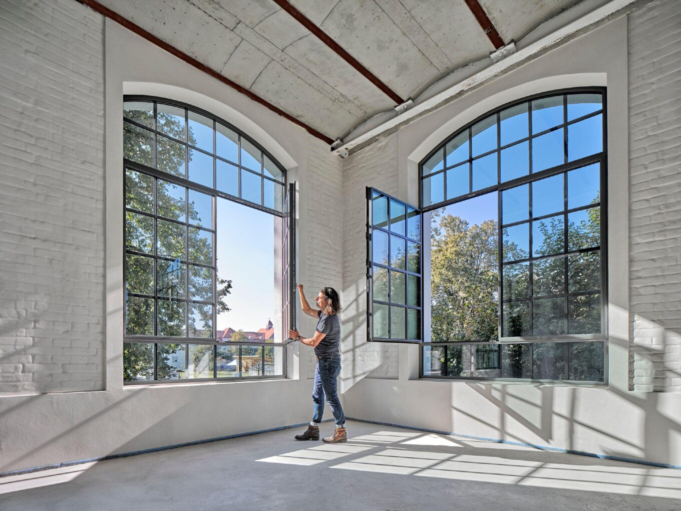 Для скління історичної будівлі фабрики використано систему сталевих профілів Janisol Arte 2.0. Фото: miguelbabo-photography