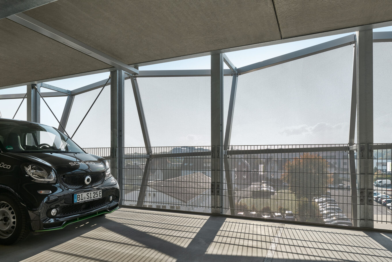 Тут же, на території кампусу, розташовані модернізовані будівлі Digital Hub One та сервісна служба Schüco Corporate Services, паркінг з унікальним параметричним фасадом із посиленого текстилю (також розробка Schüco) та величезні склади, з яких відвантажують продукцію в різні точки світу.