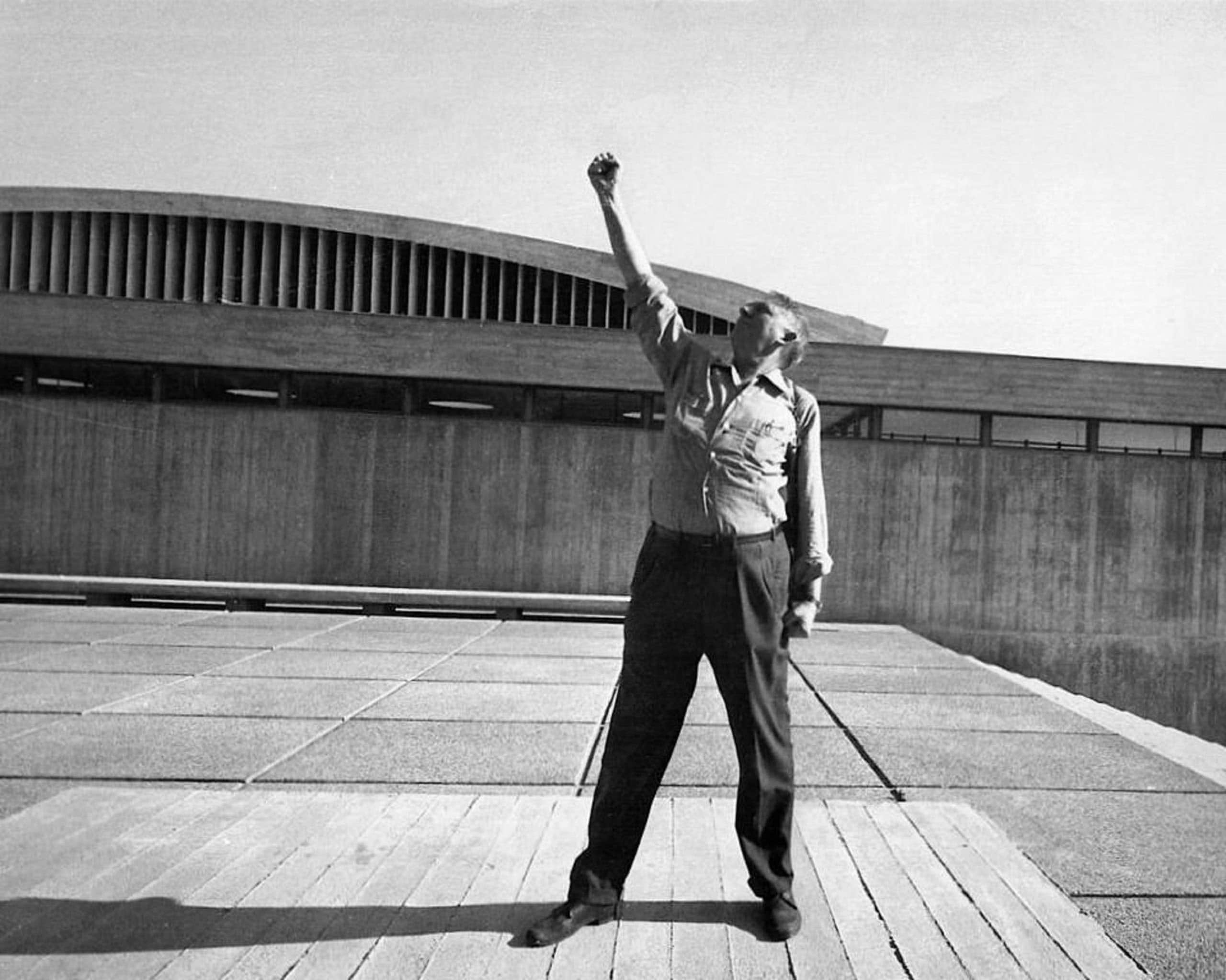 Муніо Вейнрауб-Гітай, ізраїльський архітектор, один із чотирьох учнів школи Баугауз, які повернулися до Ізраїлю. Навчався в школі Баугауз у Людвіга Міса ван дер Рое, з ним працював пізніше над численними проєктами. Іммігрував до Палестини, де відкрив власне бюро і збудував понад 8 000 будівель, включаючи меморіал Голокосту Яд ва-Шем в Єрусалимі та головну синагогу в Хайфі. Формально навчання так і не закінчив. На фото Муніо Вейнрауб-Гітай у школі Баугауз у 1930-му.
