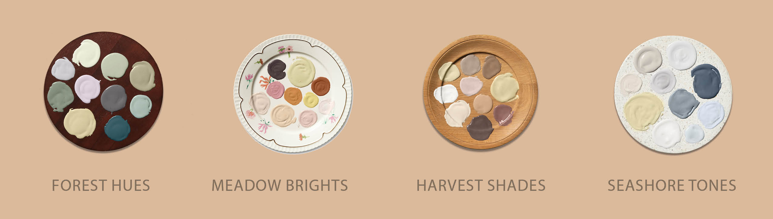 Доповнюючи цей базовий колір, фахівці Sadolin розробили 4 палітри для дизайнерів. Усі вони відрізняються за емоційним впливом. Так, кольорова гама The Lush («Соковитість») — це історія, яка розповідає про природні багатства планети, пропонуючи прохолодні відтінки лісів, полів, садів і парків. Така палітра допомагає створити в інтер’єрі атмосферу сімейного затишку. Палітра The Buzz («Дзижчання») складається з теплих кольорів: ніжно-пудрових, рожевих, молочних, рудих, і ніби відсилає до стиглих плодів, фруктів і ягід. Така гама у просторі налаштовує на спілкування й відкритість. Обираючи барви для The Raw («Сировина»), експерти з кольору надихалися первісними природними фактурами та грубими натуральними матеріалами. В цій палітрі звучать відтінки дерева, кориці, каміння та піску.