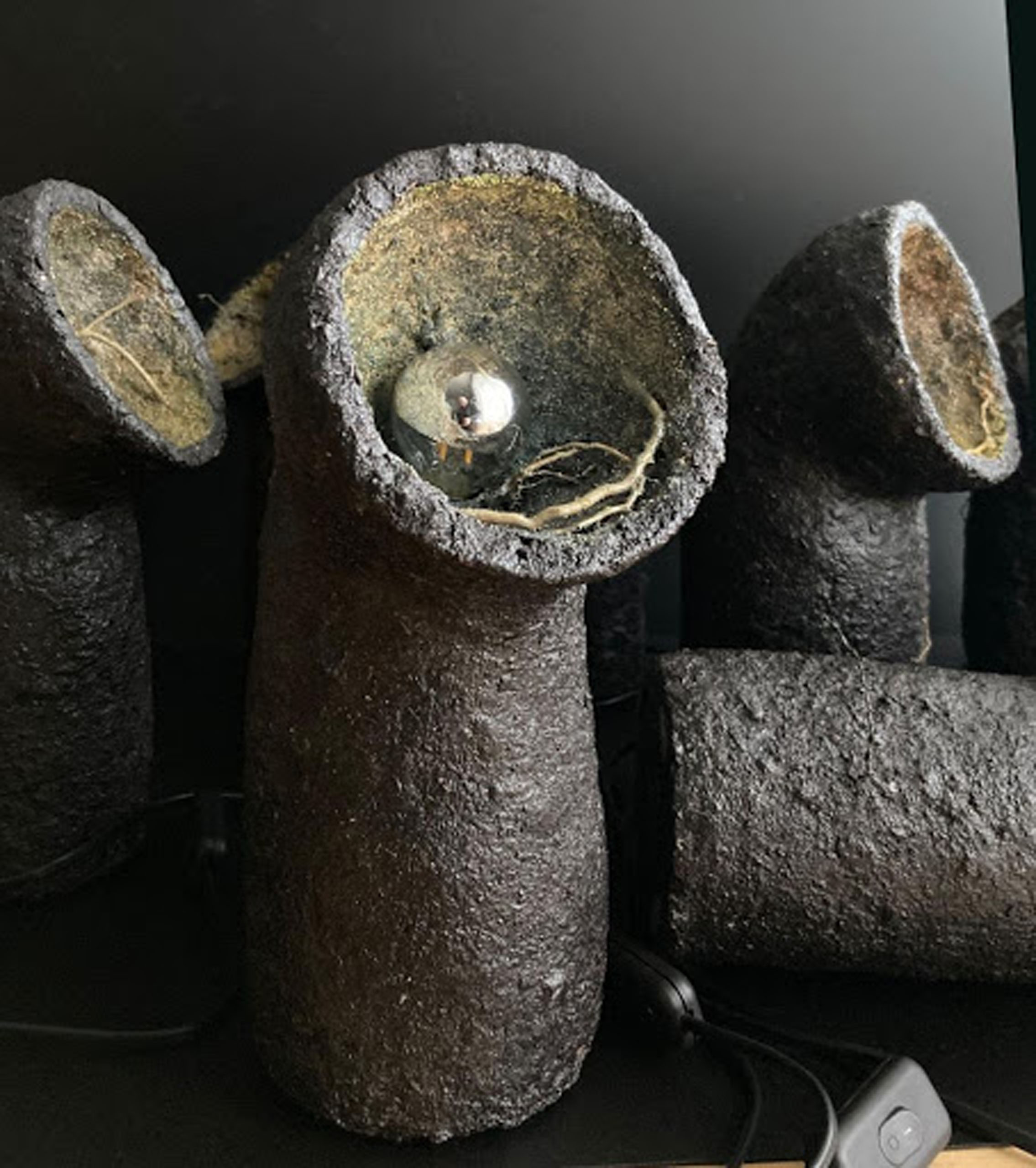 На одному — «земляний» світильник Rabbit Hole (розроблений Кібардіним у 2011 р.), на іншому — сімейство світильників «Сонях», які випускаються під брендом FAINA студією живого українського дизайну Yakusha Design.