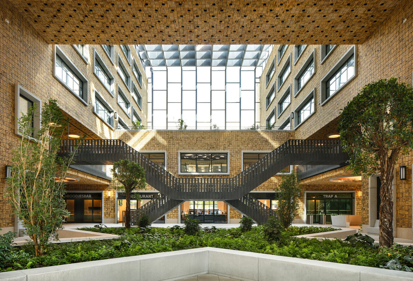 Отличной иллюстрацией современного архитектурного подхода к проектированию внутренних садов в офисных зданиях можно считать Herman Teirlinck Building. Административное здание в центре Брюсселя — совместный проект голландского бюро Neutelings Riedijk Architects и бельгийской студии CONIX RDBM Architects, реализованный в 2017 г. Офисные пространства для сотрудников фламандского правительства сформированы вокруг двух огромных оранжерей. Архитекторам удалось создать комфортные условия для людей и растений, достигнув температурного и светового баланса, что является сложной комплексной задачей. Herman Teirlinck Building отвечает всем критериям устойчивости sustainability и считается самым крупным административным зданием Бельгии, соответствующим параметрам «пассивный дом». Мы запланировали посещение этого объекта, поскольку рассчитываем, что Украина поддержит глобальные тренды.