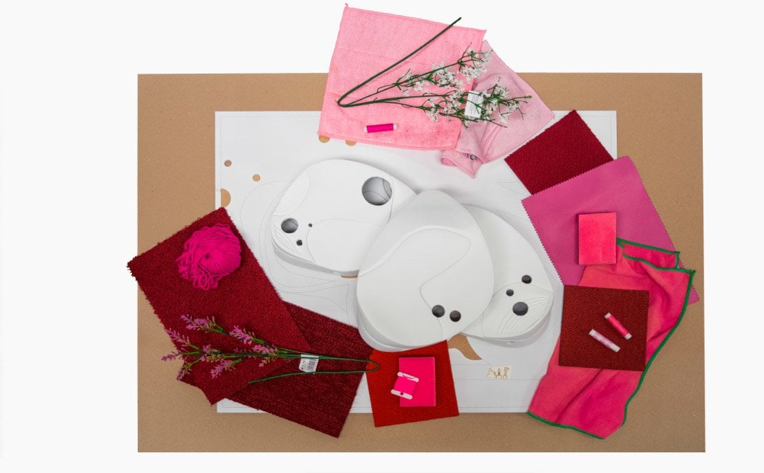 Тема цветка-бабочки многократно обыгрывается в формах клумб, отдельно стоящих павильонов и водоемов, которые связаны между собой извилистыми дорожками и воздушными мостиками. Архитекторы стремились к созданию яркой идентичности и сделали упор на цветовое оформление, выбрав для алюминиевых фасадов, цветочных клумб и декоративного мощения несколько оттенков розового – от нежно-вишневого до интенсивных фуксии и розовой лаванды.