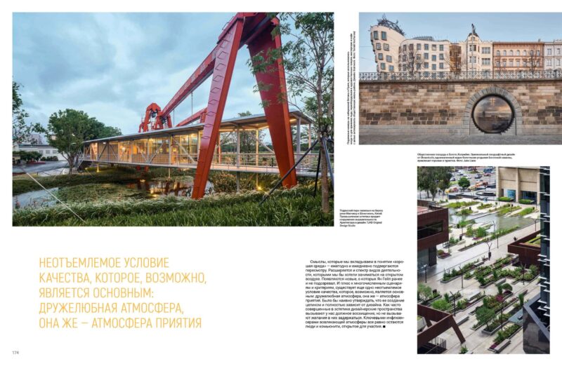 Сенси, які ми вкладаємо в поняття «хороше середовище», щорічно і щодня піддаються перегляду. Розширюється і спектр видів діяльності, якими ми хотіли б займатися на відкритому повітрі. З’являються нові, про які Ян Гейл раніше й не підозрював. І на додачу до численних сценаріїв і критеріїв існує ще одна невід’ємна умова якості, яка, можливо, є основною: доброзичлива атмосфера, вона ж — атмосфера прийняття. Було б наївно стверджувати, що її створення повністю залежить від дизайну.