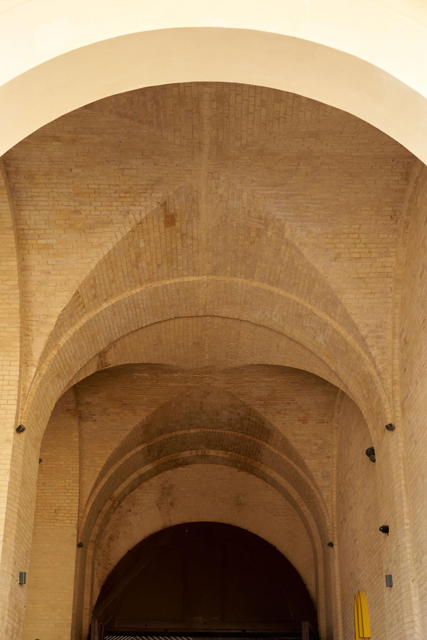 А. П.: Унікальний арочний ряд зовсім не прочитувався. Якому радянському офіцерові спаде на думку залишати голу цеглу на стінах? Звичайно, все заштукатурено та зафарбовано. Коли ми зняли всі нашарування, що спотворювали будівлю ззовні і зсередини, виявилося, що сам кістяк зберігся. Майже. Як ви знаєте, будівля збудована на схилі, і виявилося, що вона тріснула навпіл, і частина сповзає в бік Дніпра. Тому нам довелося капітально укріплювати фундамент. На посилення внутрішніх склепінь потрібні були тонни металу — ви побачите цей каркас на арках усередині.