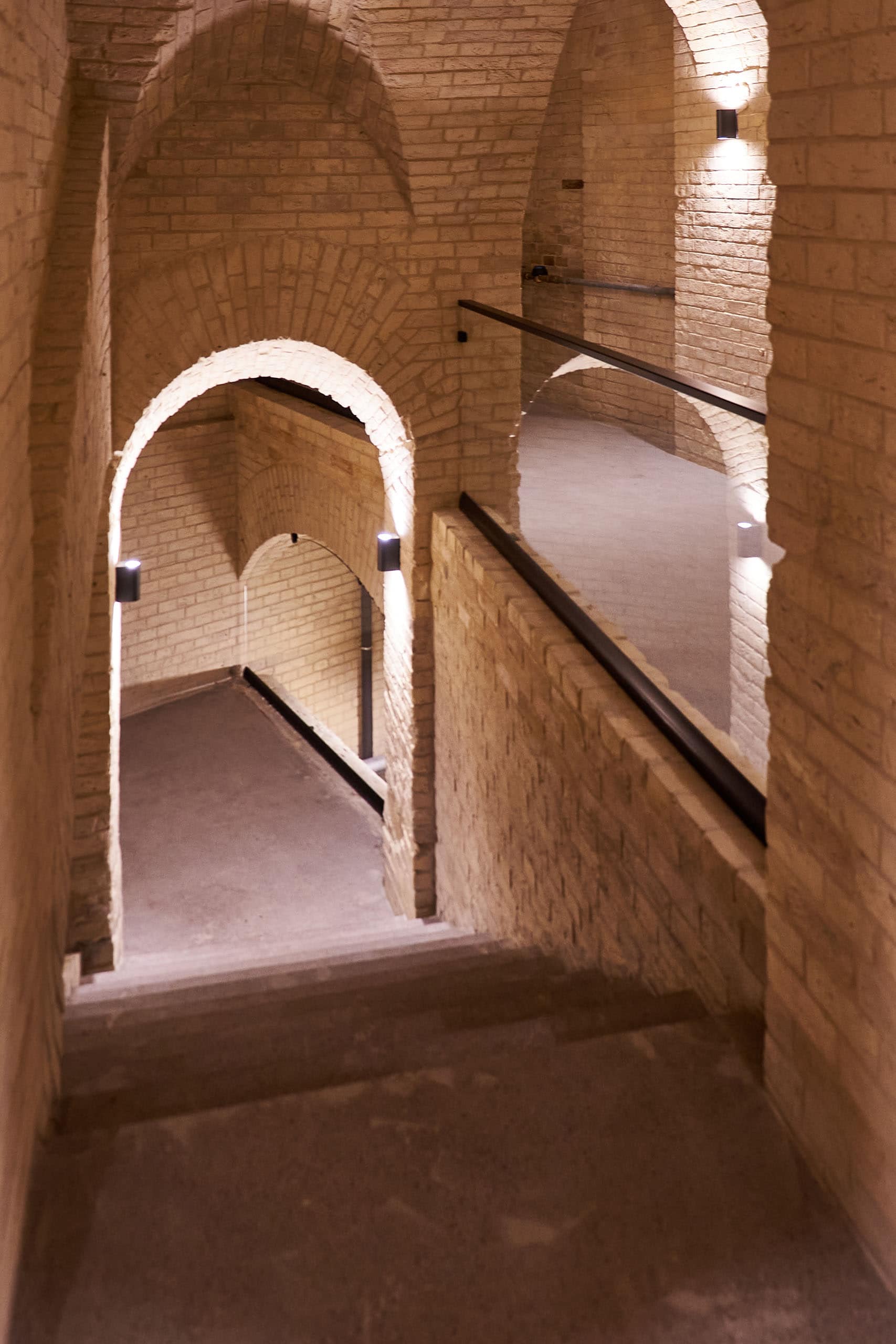 А. П.: Унікальний арочний ряд зовсім не прочитувався. Якому радянському офіцерові спаде на думку залишати голу цеглу на стінах? Звичайно, все заштукатурено та зафарбовано. Коли ми зняли всі нашарування, що спотворювали будівлю ззовні і зсередини, виявилося, що сам кістяк зберігся. Майже. Як ви знаєте, будівля збудована на схилі, і виявилося, що вона тріснула навпіл, і частина сповзає в бік Дніпра. Тому нам довелося капітально укріплювати фундамент. На посилення внутрішніх склепінь потрібні були тонни металу — ви побачите цей каркас на арках усередині.