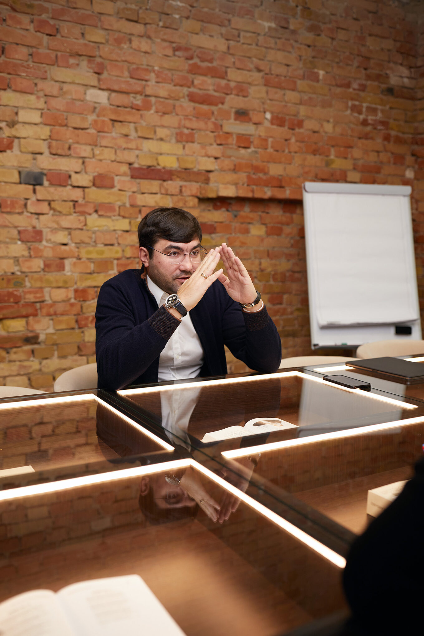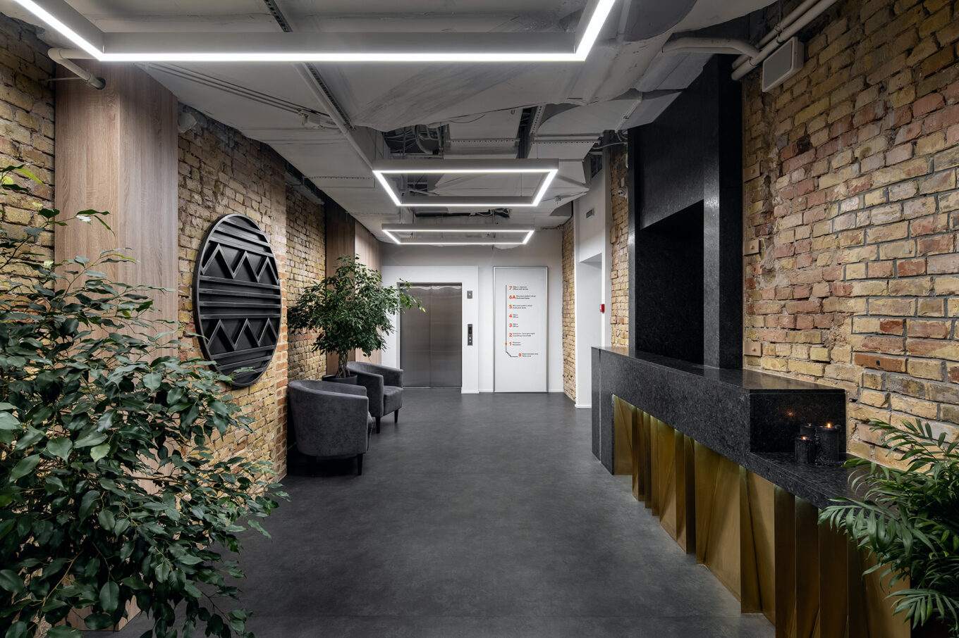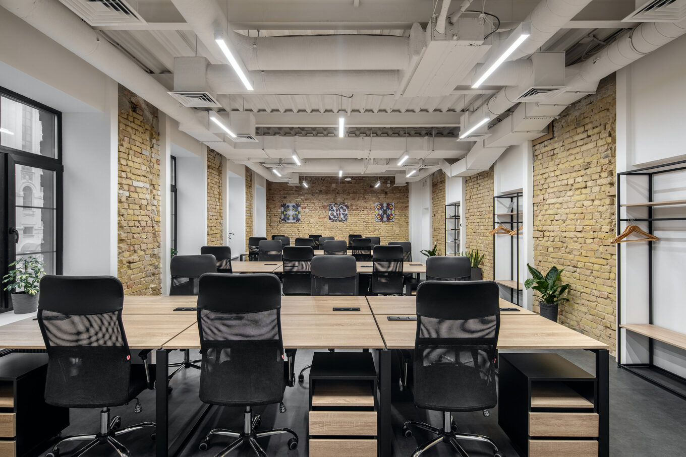 Працюючи над дизайном із командою архітекторів, ми намагалися гармонійно вписати декоративні елементи так, щоб вони не відволікали й не заважали робочому настрою. У своїх інтер’єрах ми поєднуємо прості речі, які є запорукою комфортної роботи й продуктивності: вдале планування, якісні меблі й зручне розташування локацій. Загалом нам подобається мінімалістичний стиль інтер’єрів і те, як поєднується автентична цегляна кладка зі строгими білими стінами.