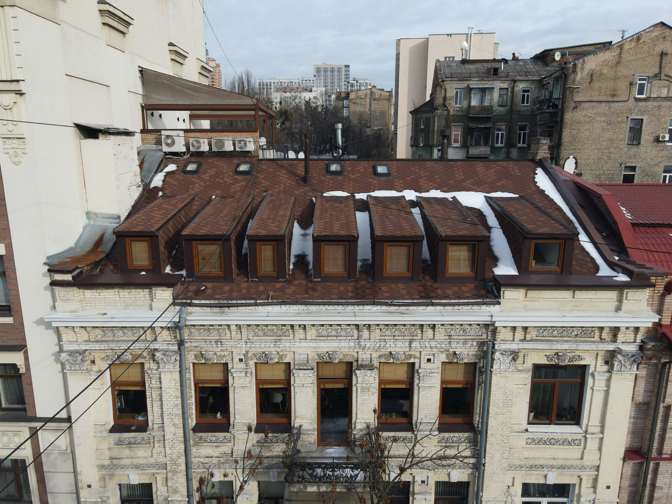 Якщо в житловому будинку на Гоголівській була здійснена реконструкція горища, то в іншому столичному об’єкті скатний дах архітектори виконали фактично з нуля. Ідеться про «будинок із фотографіями» на вулиці Ярославів Вал, 15.
